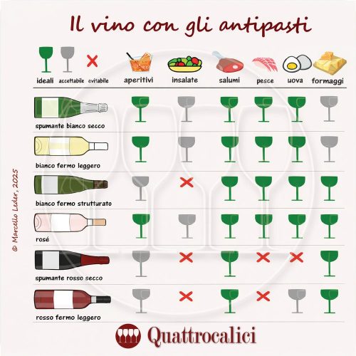 Per l’abbinamento dei vini agli antipasti, valgono ovviamente le regole generali dell’abbinamento, con alcune considerazioni specifiche: