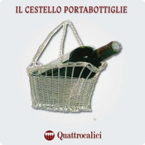 Il cestello portabottiglie, talvolta chiamato anche panier (dal servizio classico francese), รจ uno strumento elegante e funzionale, pensato per il trasporto di bottiglie di vino โ in particolare vini maturi o pregiati โ dalla cantina al tavolo del cliente, garantendo che la bottiglia rimanga in posizione orizzontale e che i sedimenti eventualmente presenti non vengano rimescolati. ร spesso realizzato in metallo intrecciato, vimini o materiali moderni, e presenta una maniglia centrale che consente di trasportarlo con facilitร e stabilitร .