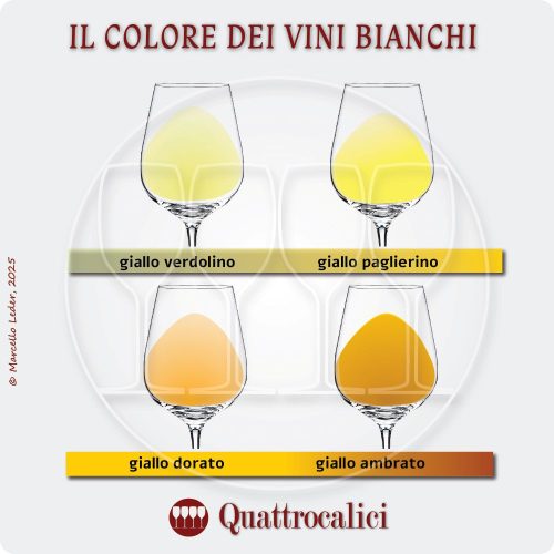 Oltre alle tonalitร di base del colore dei vini bianchi, abbiamo le sfumature, che sono: