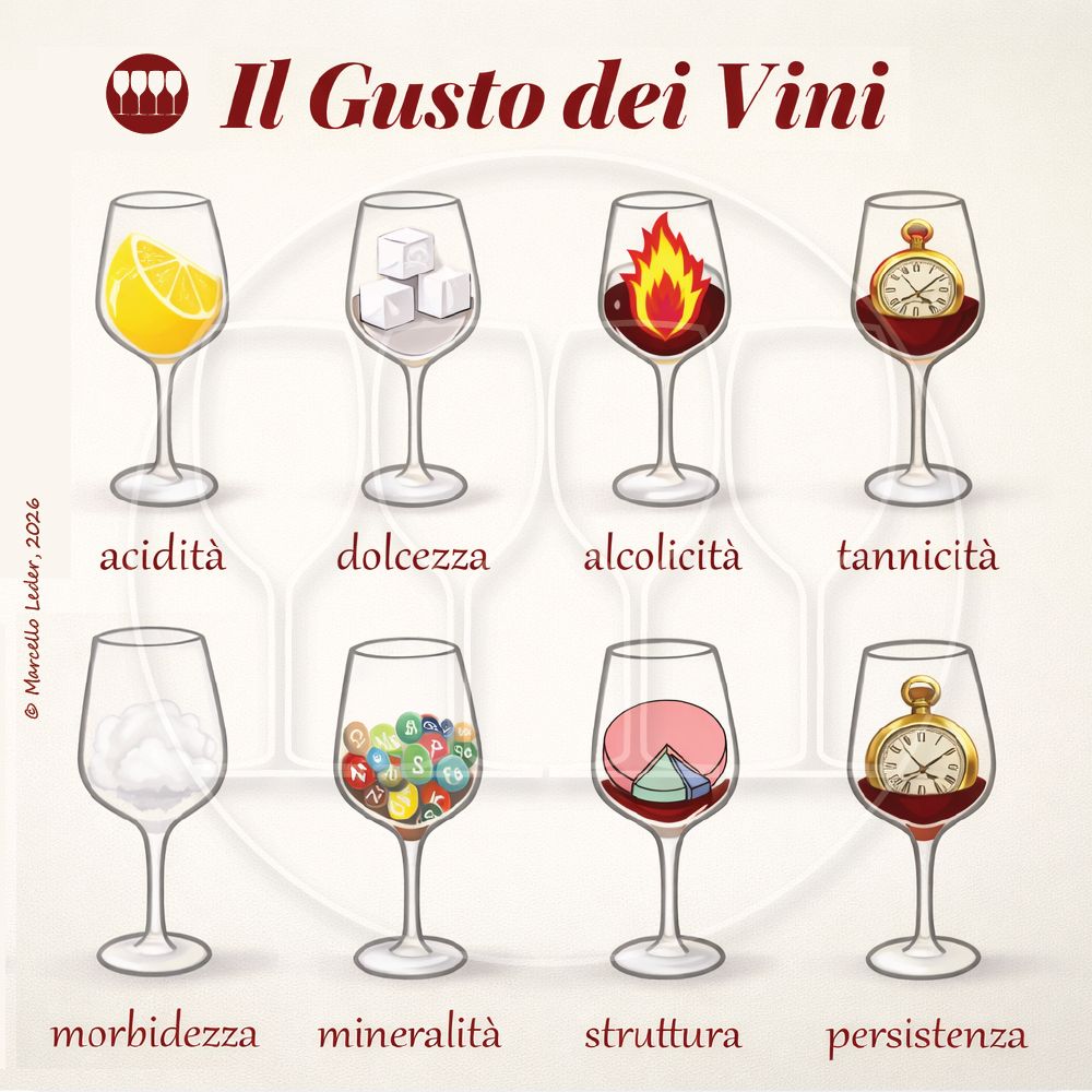 L'esame gustativo permette la valutazione di moltissime sensazioni prodotte dalle centinaia di sostanze non volatili presenti nel vino.