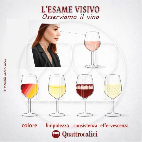 Negli articoli seguenti vedremo i dettagli su come si esamina e si valuta un vino dal punto di vista dell’Esame visivo.