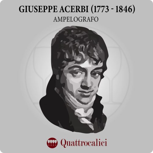 Giuseppe Acerbi รจ stato un ampelografo senza dubbio originale, oltre che una figura eclettica del Romanticismo italiano. Acerbi nasce a Castelgoffredo, in provincia di Mantova, e in questa cittadina finisce la sua vita, dopo un’esistenza ricca di avvenimenti e di avventure. Tra queste si deve ricordare una curiosa spedizione a Capo Nord, fatta nel 1798, cui fa seguire un ampio e scrupoloso resoconto che suscita la curiositร dei lettori dell’epoca e gli dร fama europea. Giuseppe Acerbi in seguito cerca di intraprendere la carriera diplomatica, non senza incontrare grandi difficoltร causate dalle vicende politiche europee che hanno segnato il periodo storico tra Settecento e Ottocento. Nello stesso periodo asseconda la propensione per le attivitร letterarie e scientifiche. Fu intorno al 1820 che iniziรฒ la sua attivitร come ampelografo, riuscendo a creare in breve tempo presso il podere di famiglia nei dintorni di Castelgoffredo una collezione di ben 1552 varietร di vite, di cui 619 presunte italiane, 400 di origine ungherese o di altri stati dell’impero asburgico e 503 provenienti dal resto dei paesi europei (Francia e penisola iberica in particolare). Nel 1823, prima che le viti messe a dimora nella coltivazione arrivassero a fruttificare (e pertanto prima che fosse possibile descriverle in modo compiuto), pubblicรฒ un catalogo, dal titolo “Delle viti italiane“, contenente appunti per la classificazione, monografia e sinonimia, preceduti da un tentativo di una classificazione delle viti, stampato dall’Editore Silvestri di Milano. Tre anni piรน tardi, mosso dal desiderio di avventura che ha sempre caratterizzato la sua esistenza, lasciรฒ l’Italia per trasferirsi in Egitto con la carica di console generale austriaco. Abbandonรฒ cosรฌ a se stessa la collezione di vitigni, insieme agli studi ampelografici, tanto che quando fece ritorno a Castelgoffredo, nel 1836, della collezione non si sapeva piรน nulla. Trascorse gli ultimi dieci anni di vita nel paese natale, dividendo il suo tempo tra la coltivazione del podere e la sistemazione delle numerosissime carte e dei volumi della biblioteca.