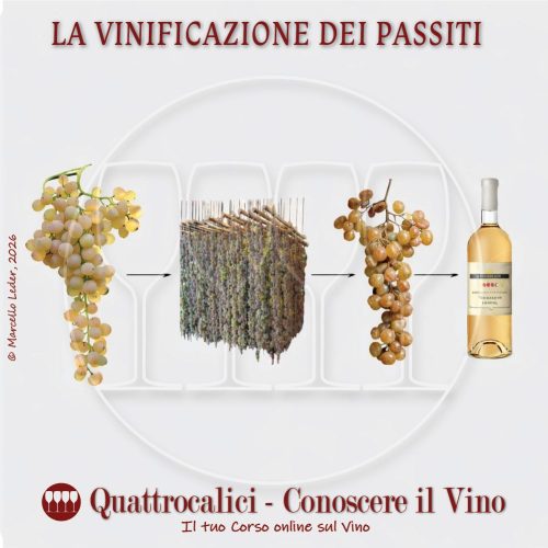 I vini passiti sono spesso considerati una categoria a sรจ stante, ma dal punto di vista tecnico sono vini normali, dal momento cheย sono prodotti utilizzando le stesse tecniche di vinificazione, con la sola differenza che le uve, prima di essere vinificate, vengono sottoposte per un periodo di tempo piรน o meno lungo ad appassimento, cioรจ a una riduzione o eliminazione dell’acqua (disidratazione) presente nell’acino, che ne fa aumentare il contenuto zuccherino e di tutte le sostanze non fermentescibili. I mosti ottenuti da queste uve sono particolarmente concentrati e adatti alla produzione di vini passiti dolci, cioรจ che presentano un residuo zuccherino significativo (puรฒ arrivare anche a 200 g/l o piรน). Nel caso la fermentazione venga portata a completamento, i vini passiti cosรฌ ottenuti risultano secchi ma particolarmente alcolici e ricchi in polialcoli, che conferiscono loro una morbidezza al sapore molto caratteristica. L’Amarone della Valpolicella e lo Sforzato di Valtellina sono i due esempi piรน famosi di vini passiti secchi.