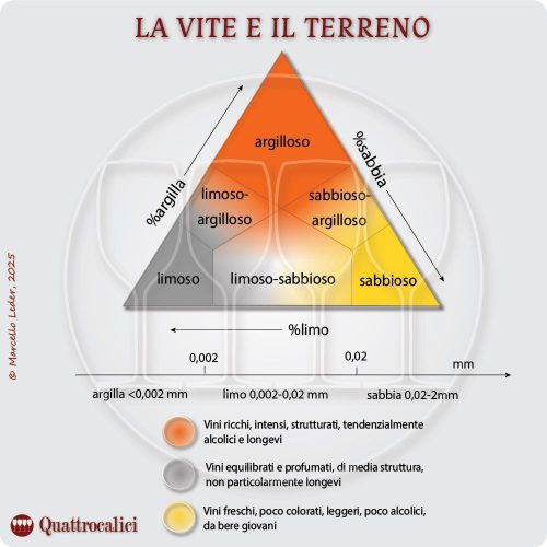 I terreni ideali dal punto di vista agronomico sono pertanto quelli che bilanciano le tre componenti, con un contenuto in argilla non superiore al 20-25%.
