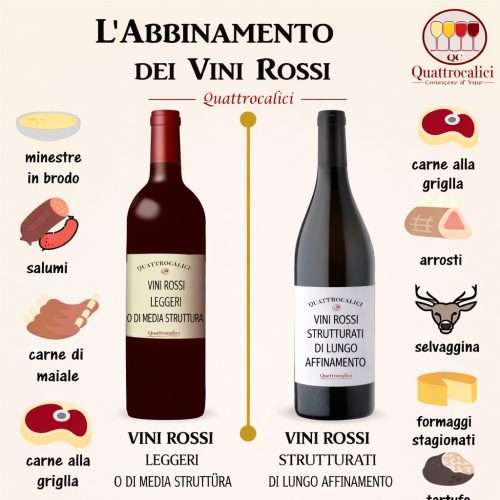 Le caratteristiche dei vini rossi e del loro abbinamento con le pietanze