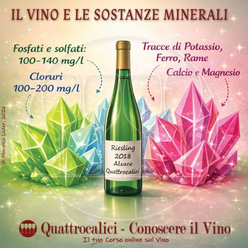 Nel vino la presenza di sostanze minerali può variare in funzione dell’ambiente pedoclimatico (terreno, freddo, caldo, vicinanza al mare, terreni salmastri ecc…), delle pratiche di cantina, e dell’affinamento.