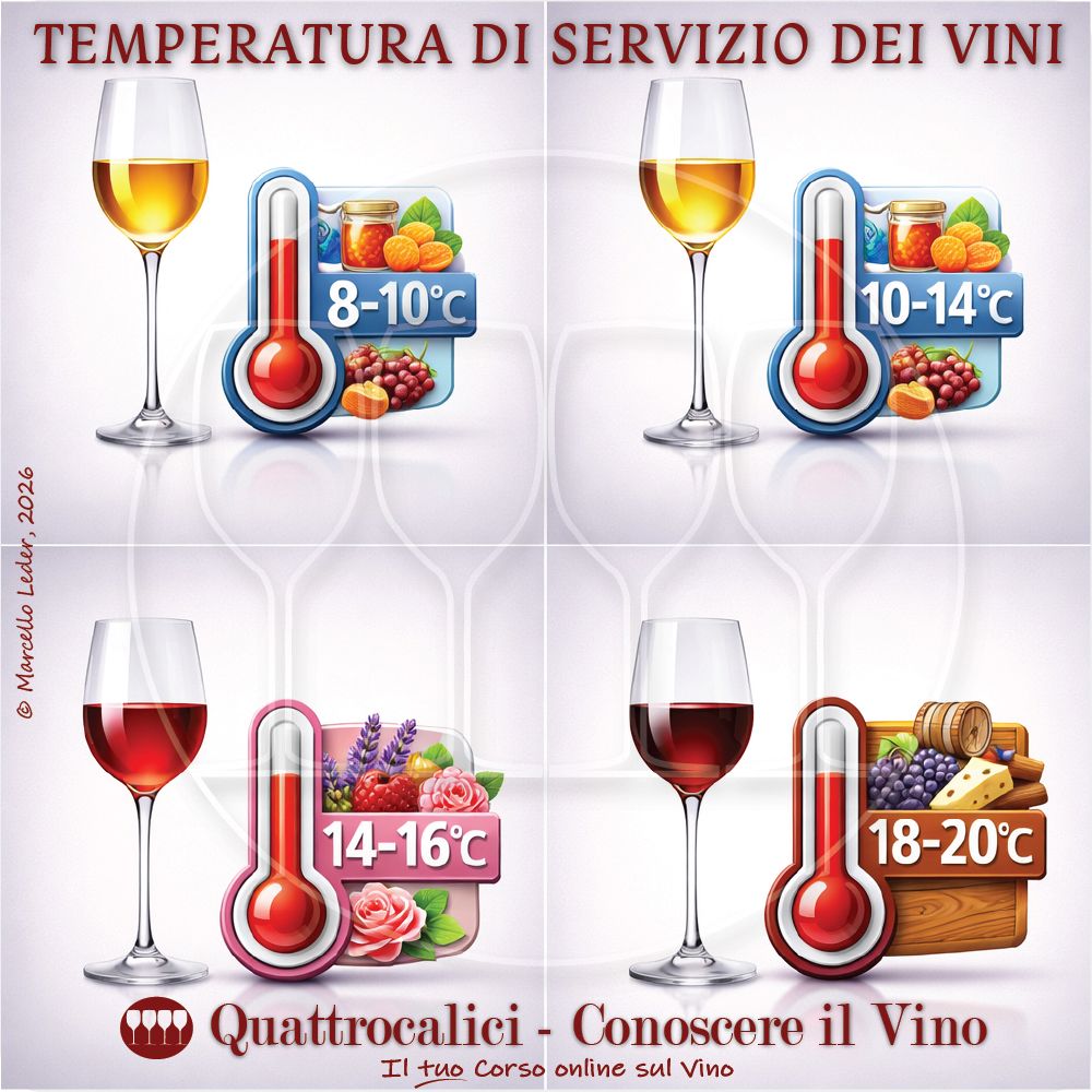 Le temperature di servizio ideali per le varie tipologie di vino sono le seguenti: