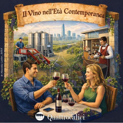 Il XIX secolo oltre alla generale ristrutturazione della viticoltura in Europa, vide anche la diffusione dei vini passiti, portati dall’America del Nord e l’introduzione ed espansione della viticoltura nei paesi del nuovo mondo, soprattutto Australia e California. Per quanto riguarda l’Italia, l’età contemporanea, oltre a profondi cambiamenti nella coltivazione e nella produzione vinicola, nacquero nuovi vini come il Barolo e lo Spumante in Piemonte e il Chianti in Toscana. Nell’Ottocento fecero anche comparsa in modo diffuso le frodi vinicole, ma iniziarono anche le prime classificazioni dei vini e dei territori di produzione, inizialmente in Francia, soprattutto nel Bordeaux, nello Champagne ed in Borgogna, ma poi nel secolo successivo anche nel resto d’Europa. Alla fine del secolo l’industria enologica era afflitta da crisi ricorrenti di sovrapproduzione. Il fattore che determinava il prezzo dei vini più comuni era la maggiore o minore abbondanza della vendemmia, mentre il prezzo dei vini migliori era funzione della altalenante qualità delle annate. Fu appunto la tendenza alle variazioni di qualità e prezzo a seconda delle condizioni climatiche che rese il commercio del vino così diverso da quello della birra e delle altre bevande alcooliche.