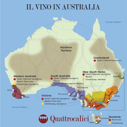 Geograficamente, l’Australia offre una varietร di condizioni climatiche e di terroir che si estendono dalle regioni temperate della Tasmania alle aree calde e aride del South Australia. Questa diversitร consente la coltivazione di un’ampia gamma di vitigni, adattati ai microclimi locali, creando cosรฌ una produzione vinicola estremamente variegata e interessante. I vitigni piรน diffusi includono il Shiraz, che ha trovato in Australia un habitat ideale, e il Chardonnay, apprezzato per la sua versatilitร e qualitร .