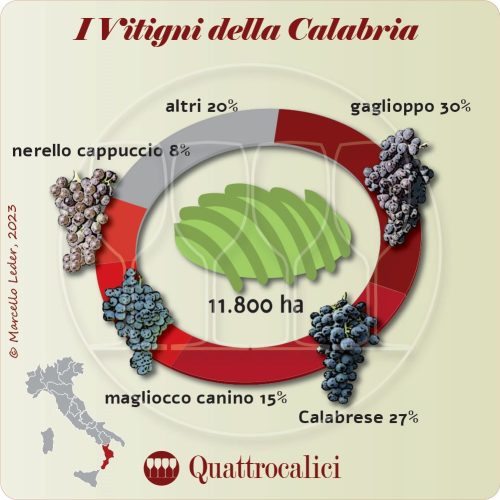 La Calabria รจ custode di una ricchezza vitivinicola caratterizzata da vitigni autoctoni unici, molti dei quali coltivati esclusivamente in questa regione.
