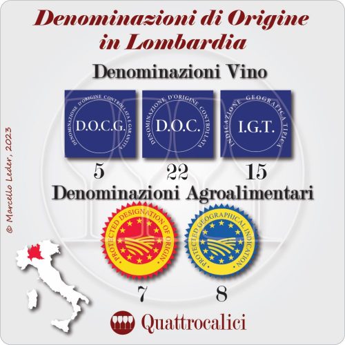 La produzione regionale di vino in Lombardia รจ rappresentata da un numero considerevole di Denominazioni di Origine.