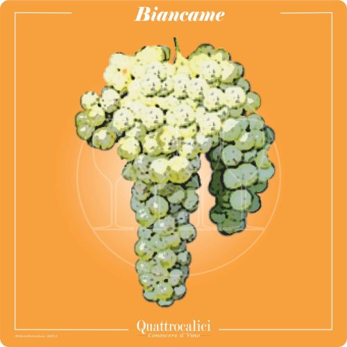 La pianta di Biancame รจ di vigoria medio-elevata, con portamento semieretto e tralci piuttosto flessibili. Le foglie sono di medie dimensioni, orbicolari o trilobate, con lembo verde chiaro e margine regolarmente dentato. Il grappolo รจ medio o medio-grande, di forma conico-cilindrica, compatto o mediamente compatto, con una o due ali. Gli acini sono medio-piccoli, sferici, con buccia sottile ma resistente, di colore giallo verdognolo con riflessi dorati alla piena maturazione. La polpa รจ succosa, di sapore dolce e neutro. Il vitigno germoglia in epoca media e matura nella seconda metร di settembre, con una produttivitร costante e regolare. Si distingue per una buona aciditร naturale e per una resa in mosto elevata, caratteristiche che lo rendono adatto sia alla produzione di vini giovani e freschi, sia a vinificazioni piรน complesse con breve affinamento.
