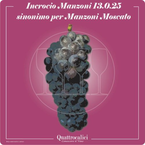 Il vitigno denominato Incrocio Manzoni 13.0.25 rappresenta un sinonimo per il vitigno Manzoni Moscato.Per accedere alla pagina del vitigno Manzoni Moscato con la descrizione completa, i descrittori ampelografici, le caratteristiche del vino prodotto con il vitigno Manzoni Moscato, clicca qui.