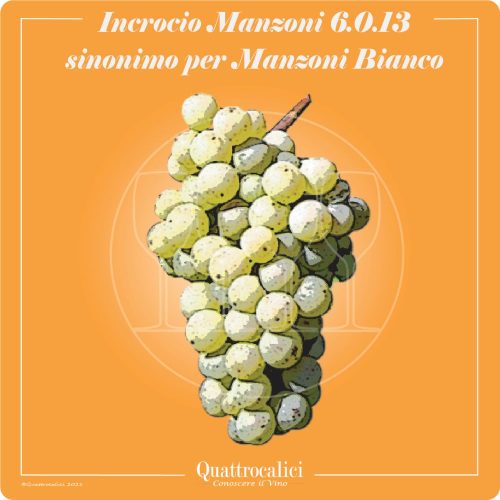 Il vitigno denominato Incrocio Manzoni 6.0.13 rappresenta un sinonimo per il vitigno Manzoni bianco.Per accedere alla pagina del vitigno Manzoni bianco con la descrizione completa, i descrittori ampelografici, le caratteristiche del vino prodotto con il vitigno Manzoni bianco, clicca qui.