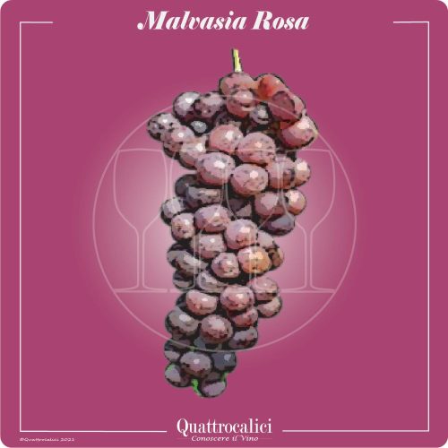 La Malvasia rosa รจ diffusa in Emilia-Romagna, soprattutto nel Piacentino. Il suo grappolo รจ medio-grande, piramidale, alato e poco compatto. L’acino รจ grande, tondo con buccia spessa, pruinosa di color rosa. Dalle uve della Malvasia rosa รจ si ricava un ottimo vino rosato, fermo o frizzante. Il vitigno รจ anche adatto alla produzione di spumanti. Il vino della Malvasia rosa ha un colore rosato tenue, profumo di pesca e viola, รจ leggermente aromatico, fresco, sapido, poco alcolico. Si abbina a salumi, primi piatti alle vongole, crostacei, ottimo anche come aperitivo, servito ad una temperatura di 12ยฐ-16ยฐ.