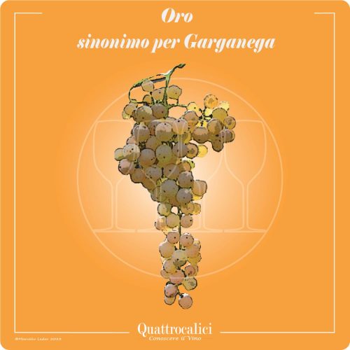Il vitigno denominato Oro rappresenta un sinonimo per il vitigno Garganega.Per accedere alla pagina del vitigno Garganega con la descrizione completa, i descrittori ampelografici, le caratteristiche del vino prodotto con il vitigno Garganega, clicca qui.