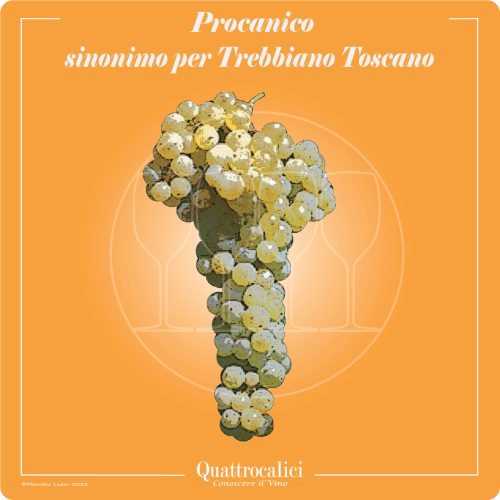 Il vitigno denominato Procanico rappresenta un sinonimo per il vitigno Trebbiano Toscano.Per accedere alla pagina del vitigno Trebbiano Toscano con la descrizione completa, i descrittori ampelografici, le caratteristiche del vino prodotto con il vitigno Trebbiano Toscano, clicca qui.