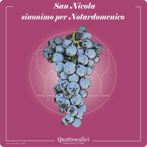 Il vitigno denominato San Nicola rappresenta un sinonimo per il vitigno Notardomenico.Per accedere alla pagina del vitigno Notardomenico con la descrizione completa, i descrittori ampelografici, le caratteristiche del vino prodotto con il vitigno Notardomenico, clicca qui.